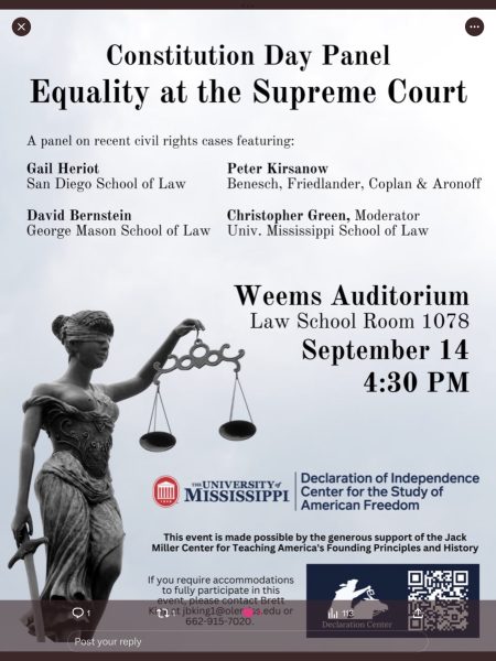 IF YOU’RE IN MISSISSIPPI NEXT WEEK:  On Thursday, September 14, David Bernstein, Peter Kirsanow, and I will be joining Chris Green at Ole Miss for a Constitution Day discussion of the Supreme Court’s recent decisions on issues of equality.